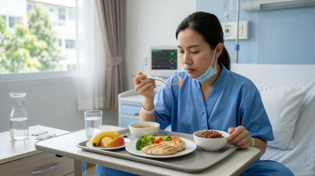 ผู้ที่อยู่ในช่วงพักฟื้นควรเน้นโภชนาการที่อุดมไปด้วยคุณค่าทางอาหาร เพื่อชดเชยสิ่งที่ร่างกายสูญเสียไป